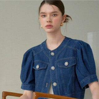 [DK SHOP] 泡泡袖方扣短版牛仔夾克