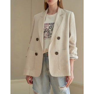 [DK SHOP] Dominic 人字紋捲起開口亞麻夾克