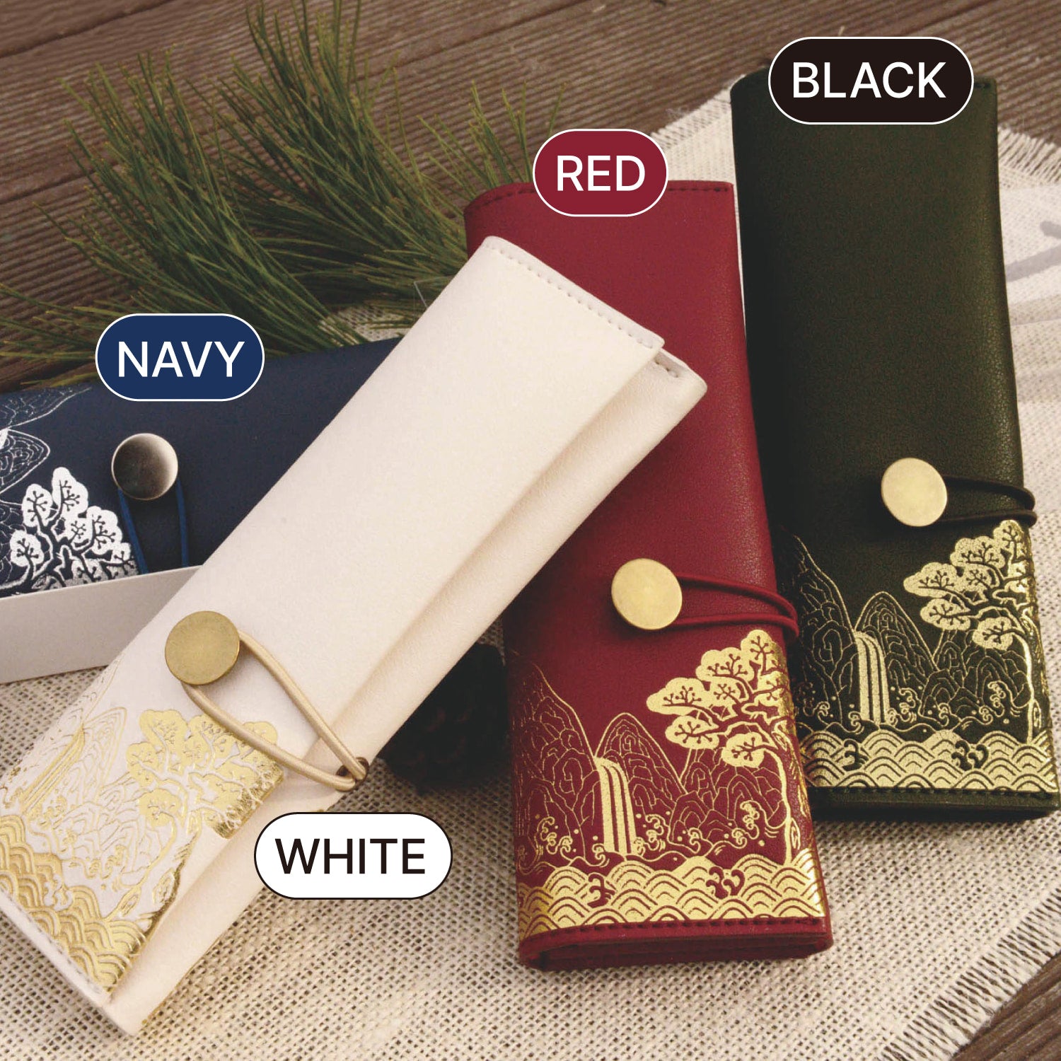 筆袋表面以金銀箔雙重熱壓工藝壓印,保持更持久的光澤
