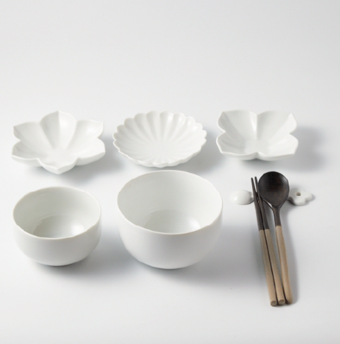 包含三個小菜碟,以及飯碗與湯碗,是打造整潔且完整餐桌擺設的基本套組。