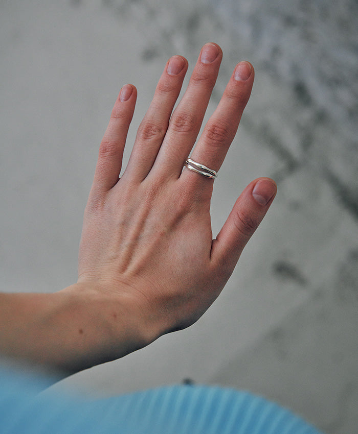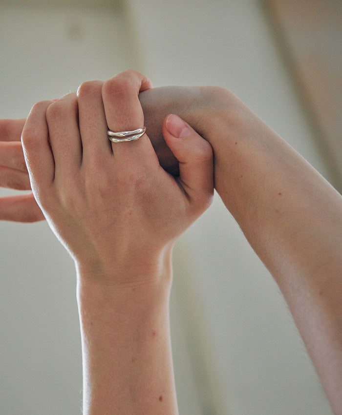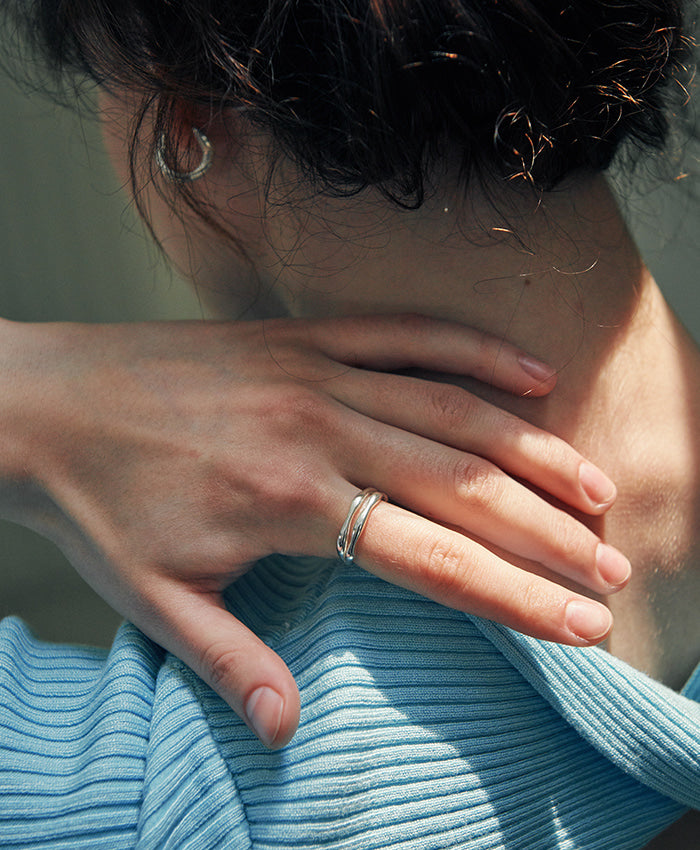 這款開口戒由兩條線交織而成,搭配如竹節般的立體細節設計。