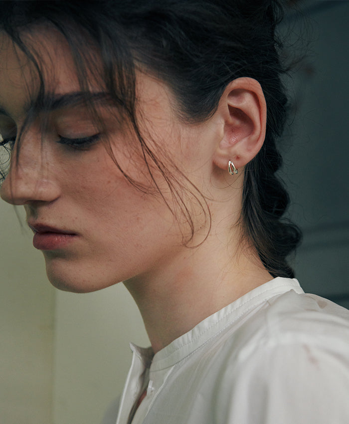 尺寸:1cm / 厚度 6mm顏色:銀色材質:925 純銀將兩個細緻的線圈耳環合而為一的造型耳環。在基本圓弧耳環的基礎上稍做變化,讓整體更具有亮點,迷你尺寸適合日常配戴,是一款實用有型的配件。