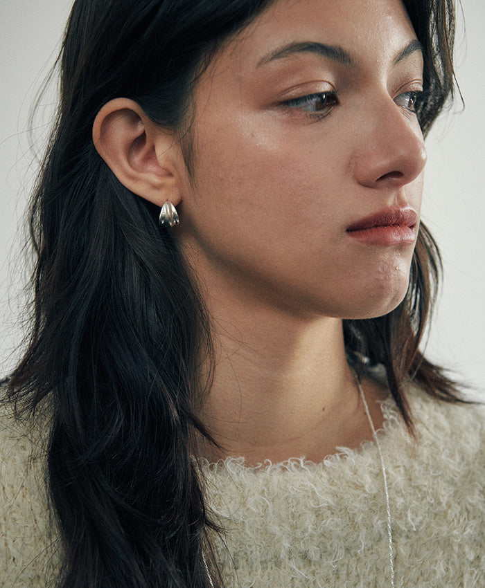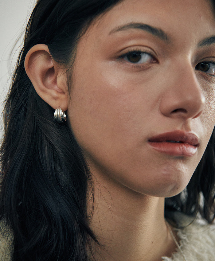 一款以曲面輪廓與圓潤線條細節為設計重點的易扣式耳環。