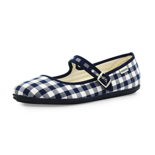 VICTORIA 藍白色瑪莉珍格紋娃娃鞋
