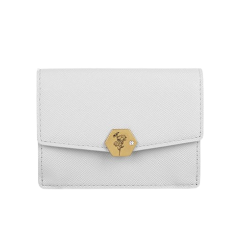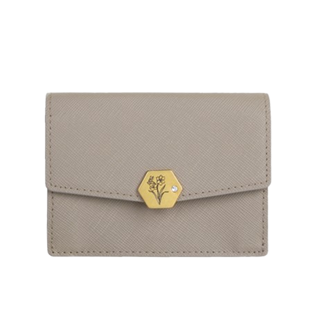 D.LAB Kara 生日花牛皮淺灰色卡夾 12款