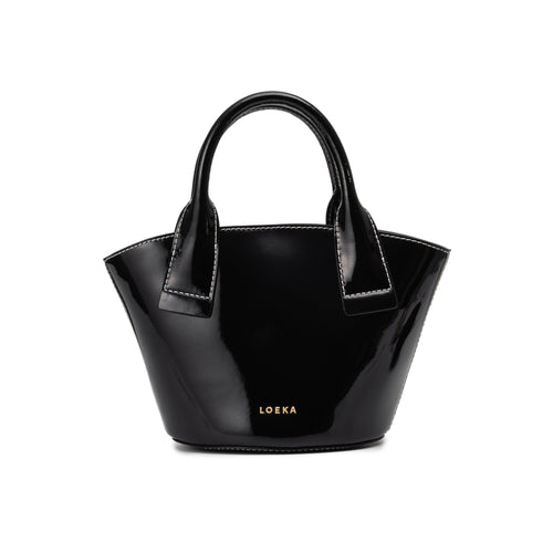 LOEKA Marqueta S 優雅牛皮亮面黑水桶小包
